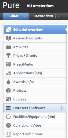 - You can fill in the form using the following manual and read more about the various metadata in use: LibGuides VU > Pure Publications > Add datasets