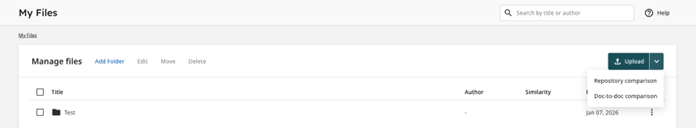 The feature for document-to-document comparison enables you to upload a single primary document for comparison with up to five additional comparison documents. Please note that any documents you upload for document-to-document comparison will remain unindexed and will not be searchable for future submissions.