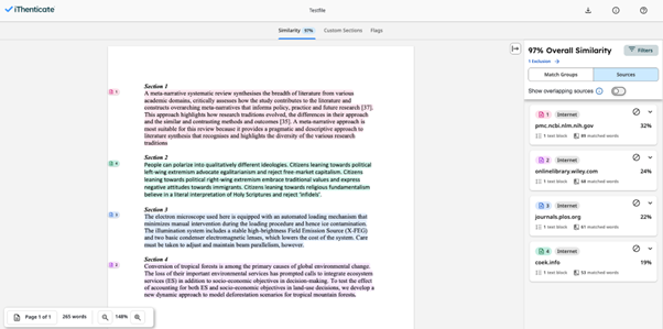 iThenticate provides an AI-detection feature to identify potential AI-generated content to support content integrity.