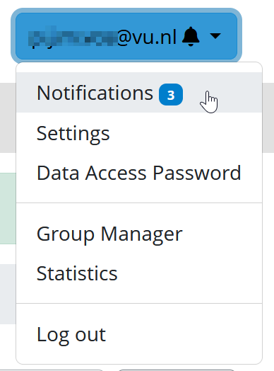 If you have unread notifications a Bell sign will be visible next to your email address on the top right button. You can view notifications by clicking on the Notifications button.