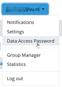 - Click on your username in the top right and click Data Access Password or go to https://portal.yoda.vu.nl/user/data_access: